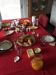 Het ontbijt brengen we op de afgesproken tijd bij u in het gastenverblijf. Bij mooi weer kunt u uiteraard buiten (in de zon of in de schaduw) ontbijten. Op verzoek is ontbijten in onze woonkeuken ook mogelijk.